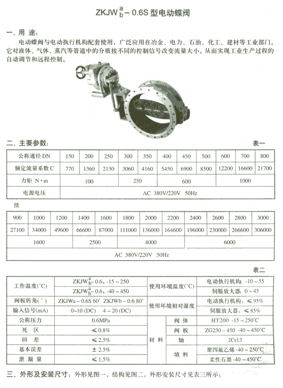 产品名称: 电动蝶阀 公司名称: 扬州凯斯通液压机械制造厂 产品型号: ZKJW(ab)-0.6S 产品简介: 电动蝶阀具有结构简单、体积小、重量轻、材料耗用省,安装尺寸小,开关迅速、90°往复回转,驱动力矩小等特点,用于截断、接通、调节管路中的介质,具有良好的流体控制特性和关闭密封性能。