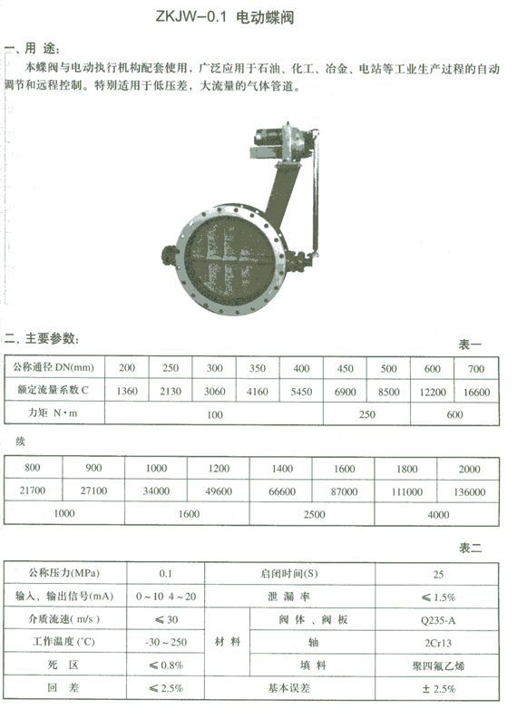产品名称: 电动蝶阀 公司名称: 扬州凯斯通液压机械制造厂 产品型号: ZKJW-0.1 产品简介: 电动蝶阀具有结构简单、体积小、重量轻、材料耗用省,安装尺寸小,开关迅速、90°往复回转,驱动力矩小等特点,用于截断、接通、调节管路中的介质,具有良好的流体控制特性和关闭密封性能。
